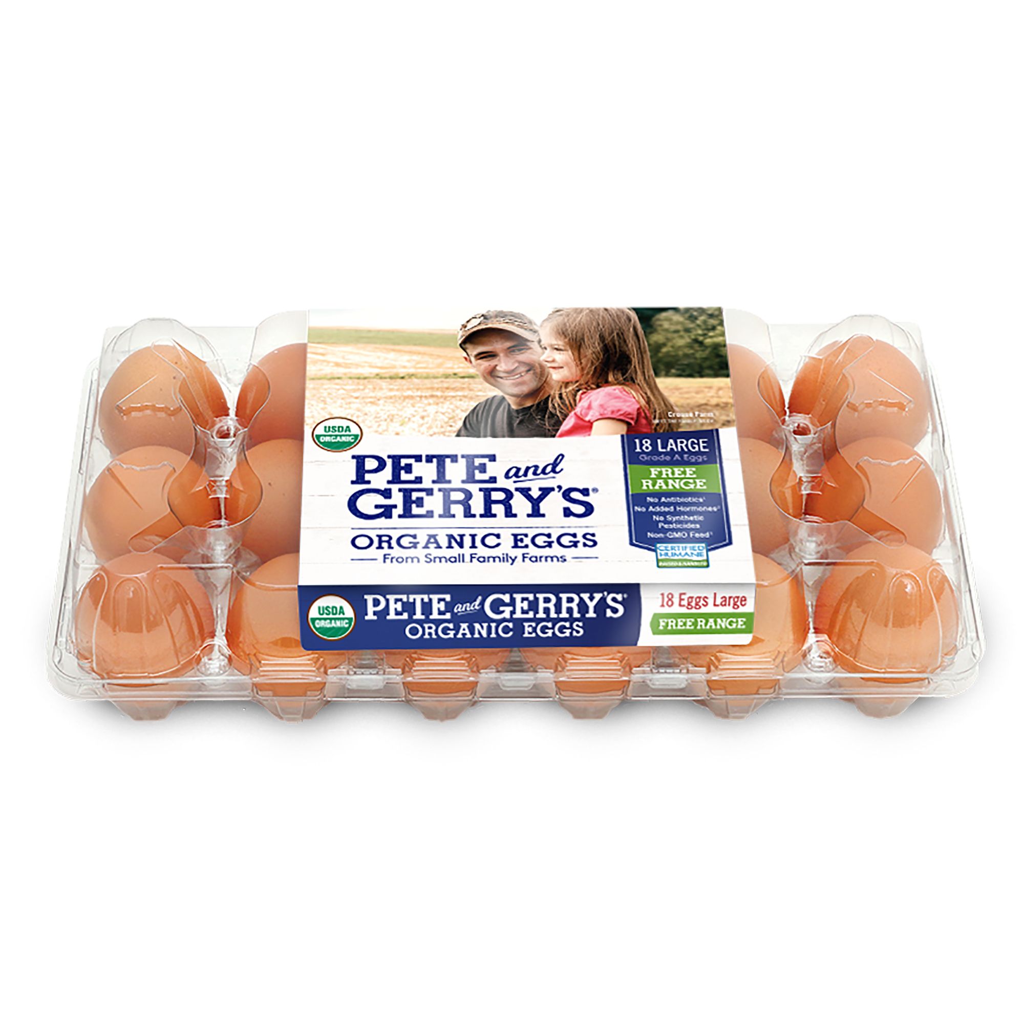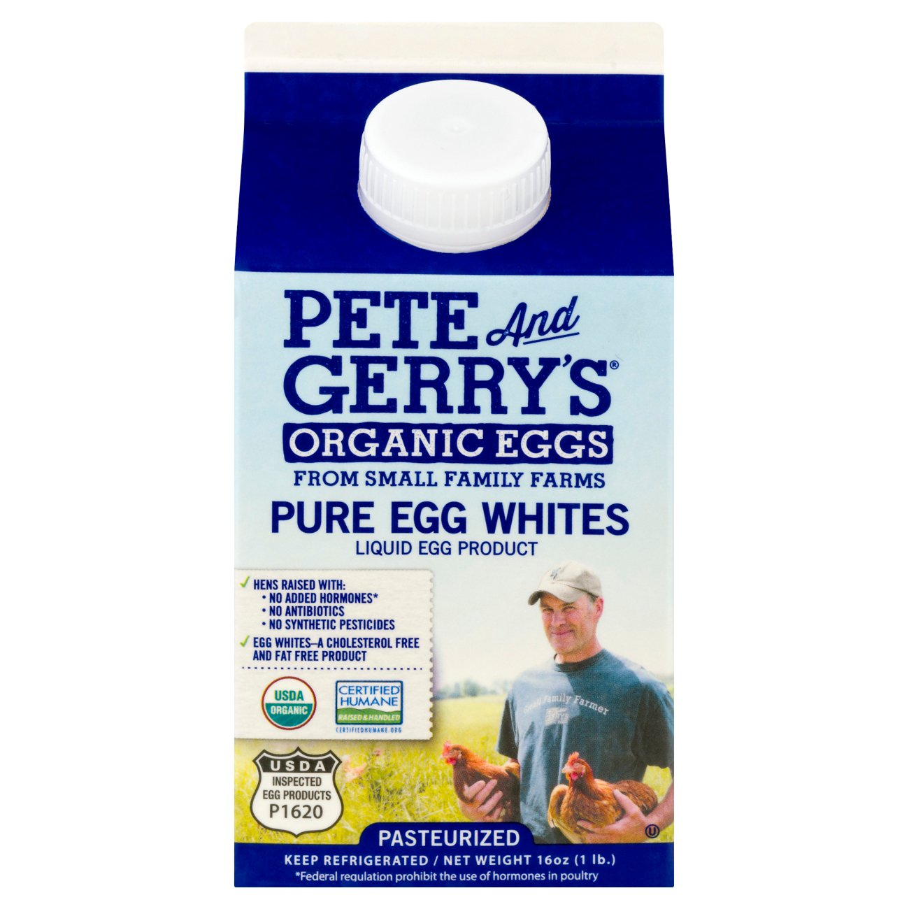 Pete & Gerrys, Large Eggs, 18 Count - amazon.com Pete and Gerry's Organic Eggs come without the shells too! Our organic liquid egg whites are pasteurized, fat-free, cholesterol-free and still packed with protein. They are perfect for cholesterol-conscious people and ideal for people who love to bake.